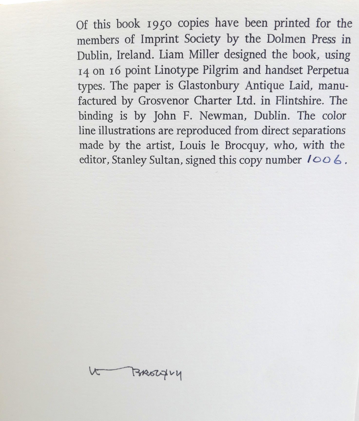 Limited Edition of 1950 Numbered Copies, Signed by Louis Le Brocquy.