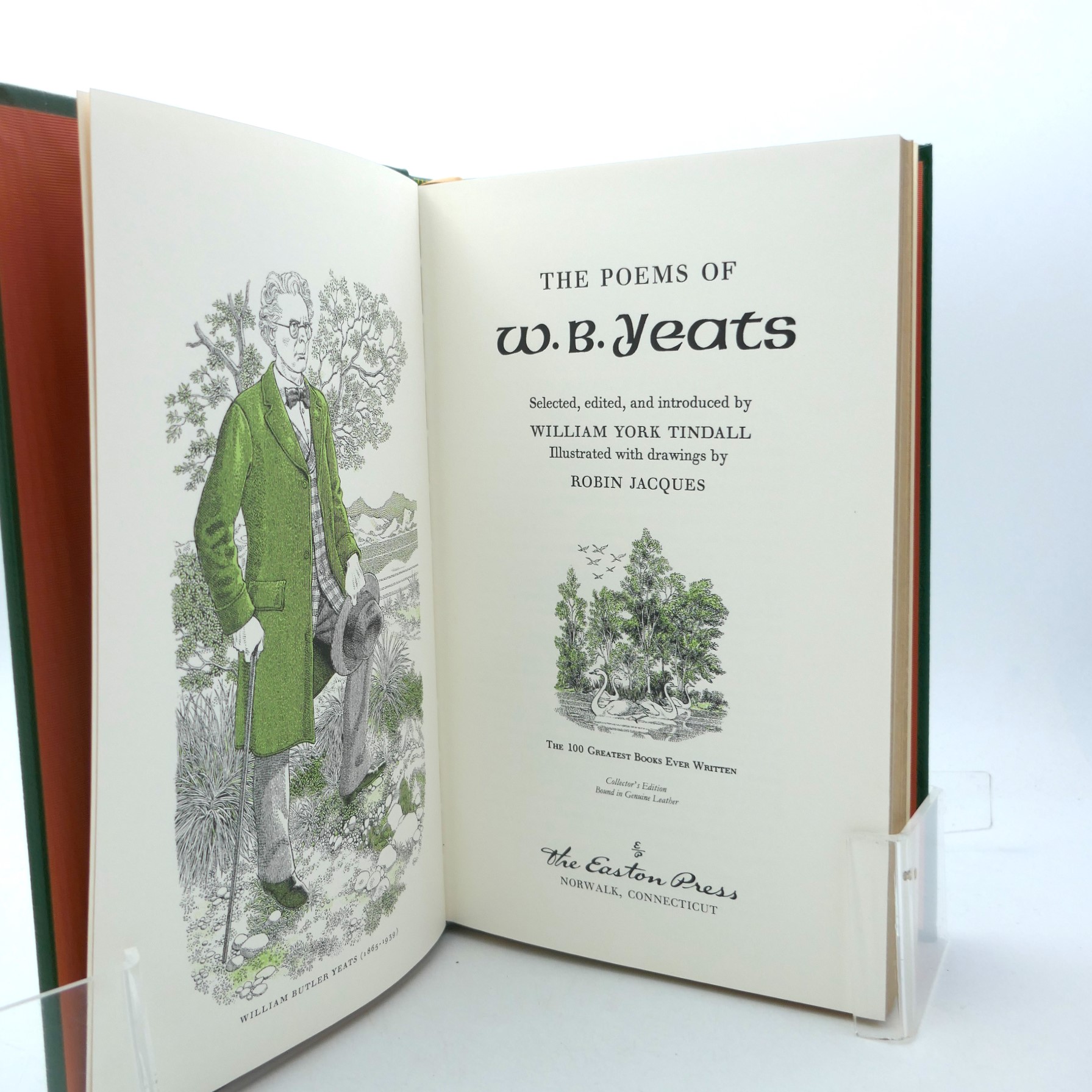 The Poems of W.B. Yeats. Selected, Edited, and Introduced by William York Tindall. Illustrated With Drawings by Robin Jacques. Easton Press, 1976. Full green morocco with covers decorated in gilt. A fine copy, ideal for presentation.