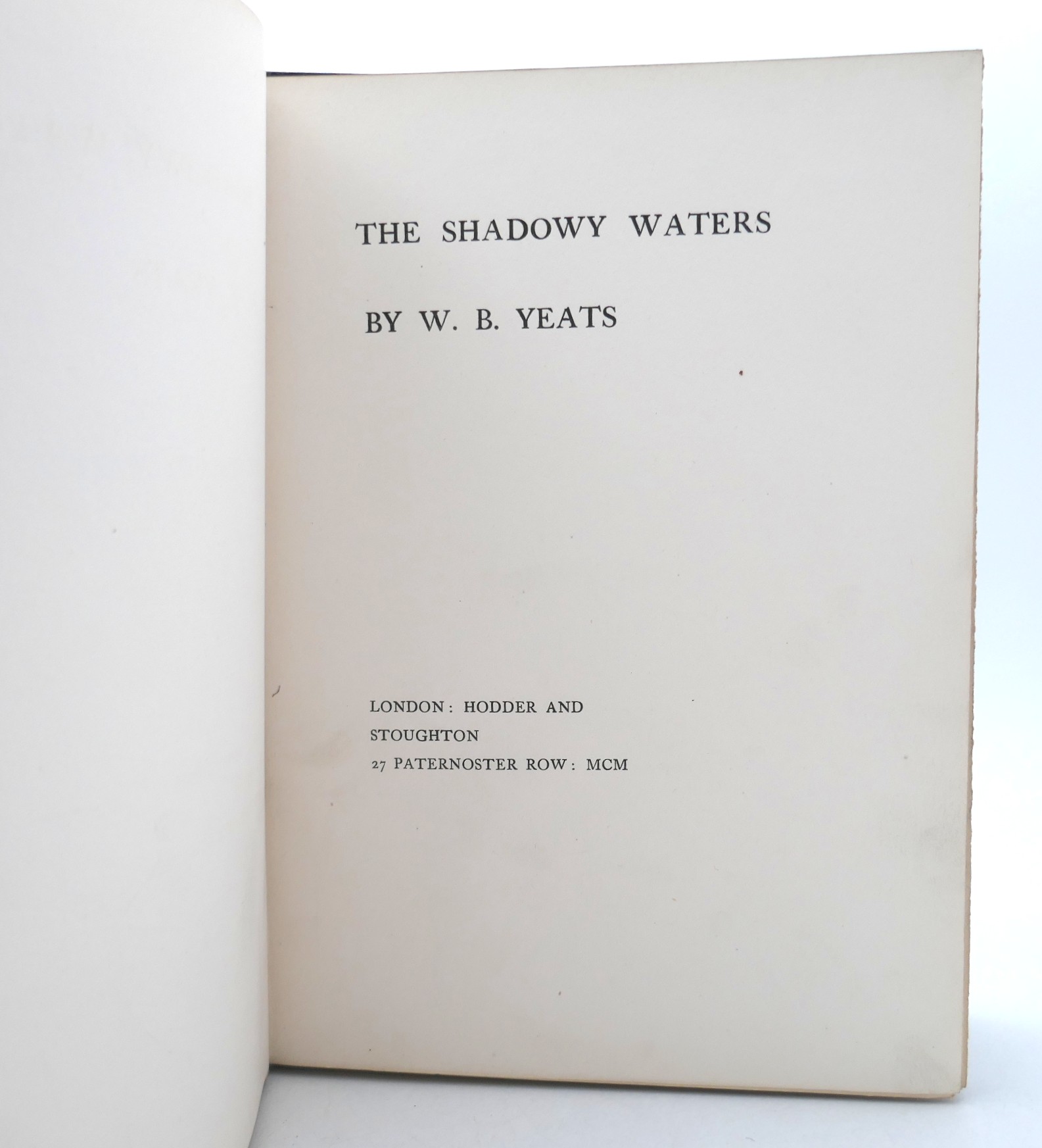 The Shadowy Waters. London: Hodder & Stoughton, 1900. First Edition. Pp , 57, untrimmed. Blue ribbed cloth, gilt rose to right corner, title in gilt on spine, top edge gilt. Light pale spotting along beveled margins, contents in nice bright condition.