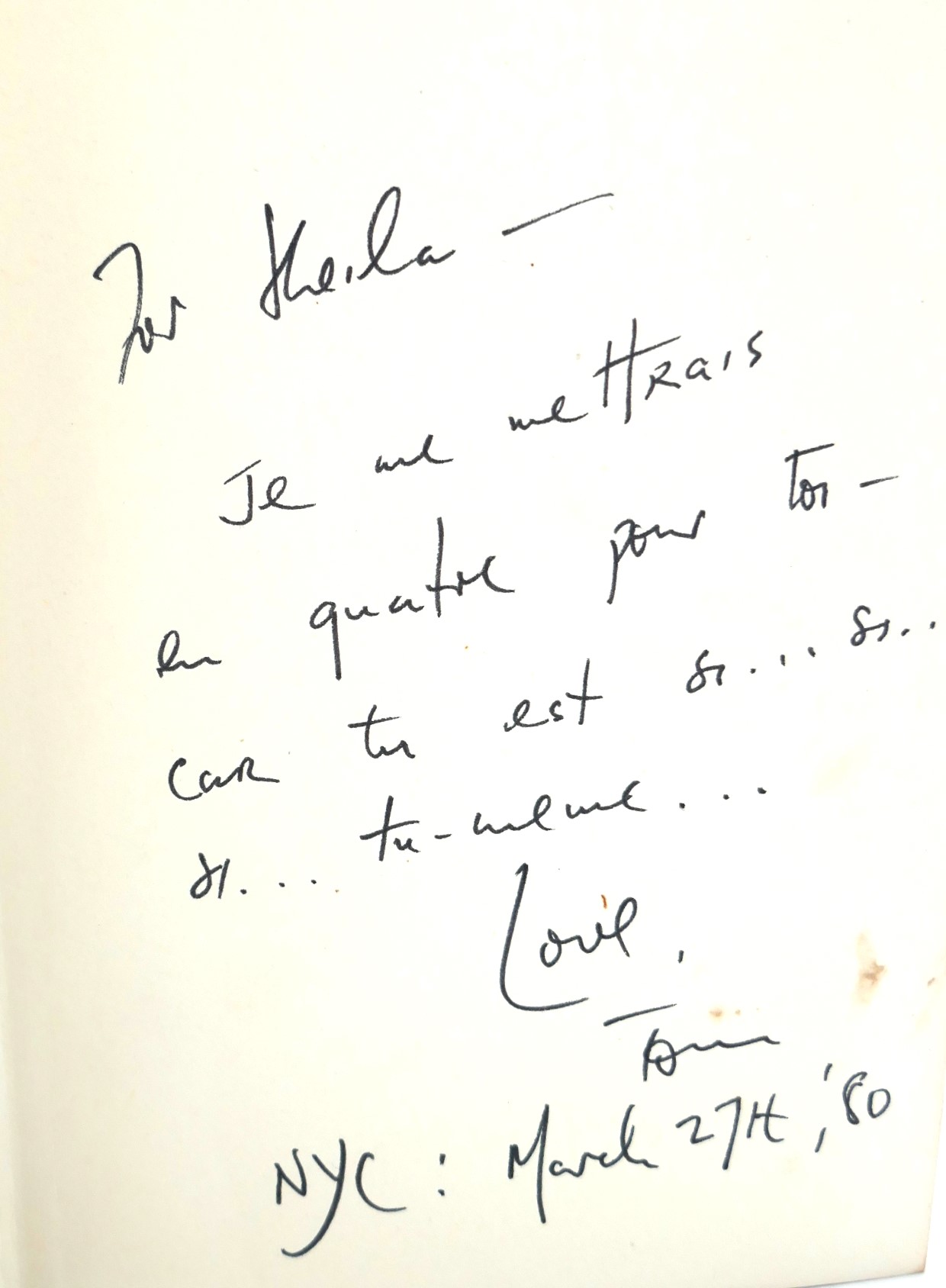 Presentation inscription from Tom McIntyre – the acclaimed Irish playwright, poet, short story writer and novelist – to the front free endpaper.