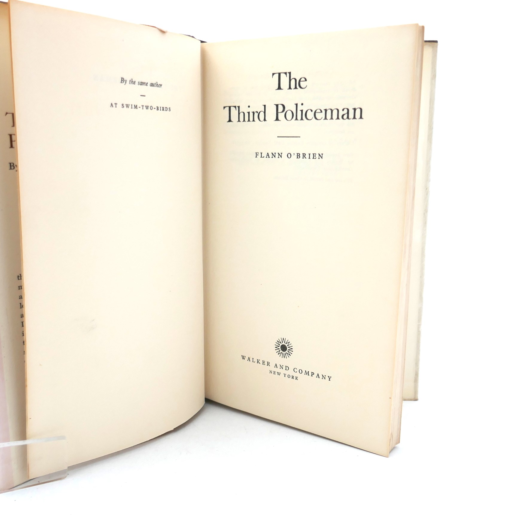 The Third Policeman. New York: Walker & Co., 1967. First American Edition. Pp, 200. Brown cloth boards, in publisher’s pictorial dust jacket. Light fraying along top margin of jacket, book in nice bright condition.