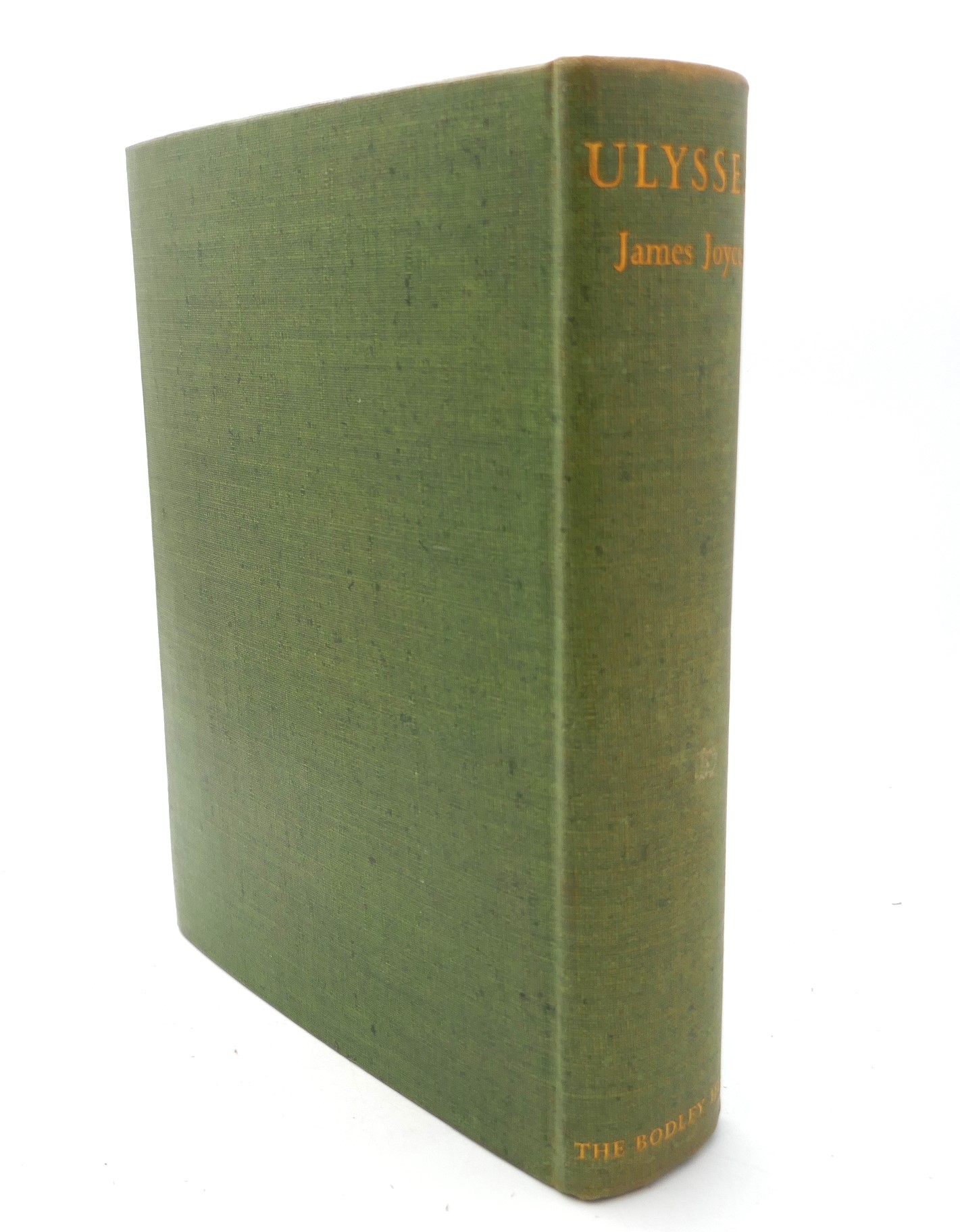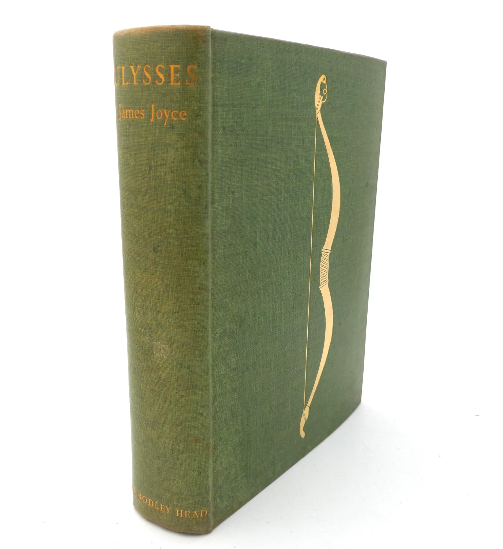 Ulysses. London: Bodley Head, 1936. First Printing in England. Publisher’s green polished linen buckram, title lettered in gilt on spine, with Homeric bow on upper cover (designed by Eric Gill). In publisher’s dust jacket, unrestored with a few dust marks & light wear to head & tail of spine; contents pages in fine bright condition. An excellent example complete with the scarce dust jacket.
