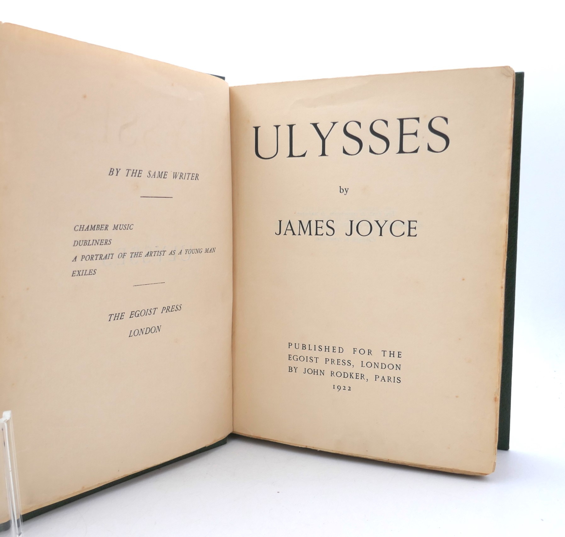 Ulysses. Published for The Egoist Press London by John Rodker, Paris 1922. First English Edition (printed in France). Rebound in full faux green crushed morocco boards, title labels to spine. Lacking the publisher’s wrappers. With the original eight pages of Errata listing the over 200 typographical errors (bound-in at rear).
