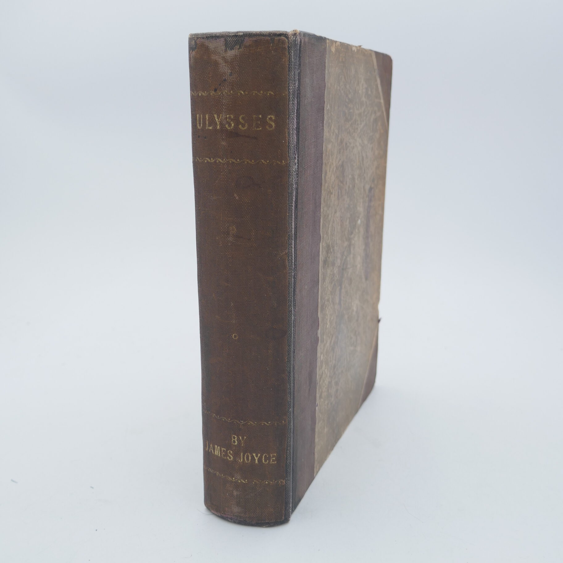 Ulysses. Shakespeare & Co., 1925. Seventh edition. Bound in half cloth over marbled boards, title lettered in gilt to spine; covers lightly scuffed & faded. Lacking the original blue wrappers. Contents pages in nice condition throughout.