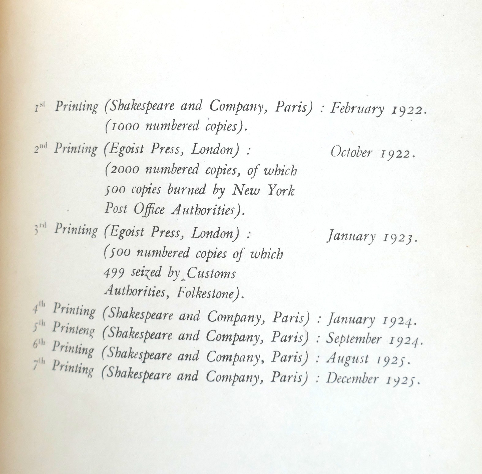 Between 1922 and 1925 the text of Ulysses was reprinted seven times.