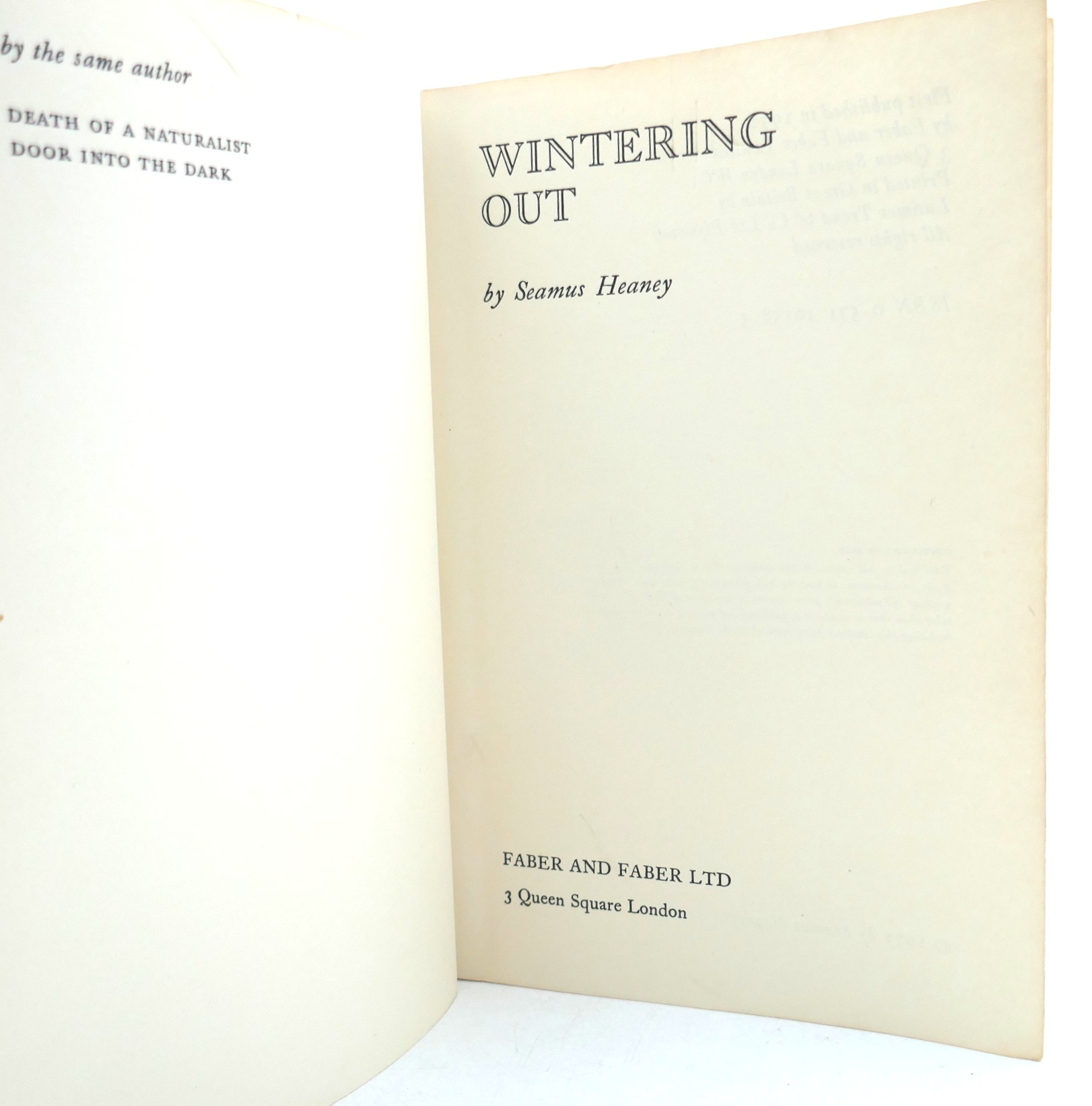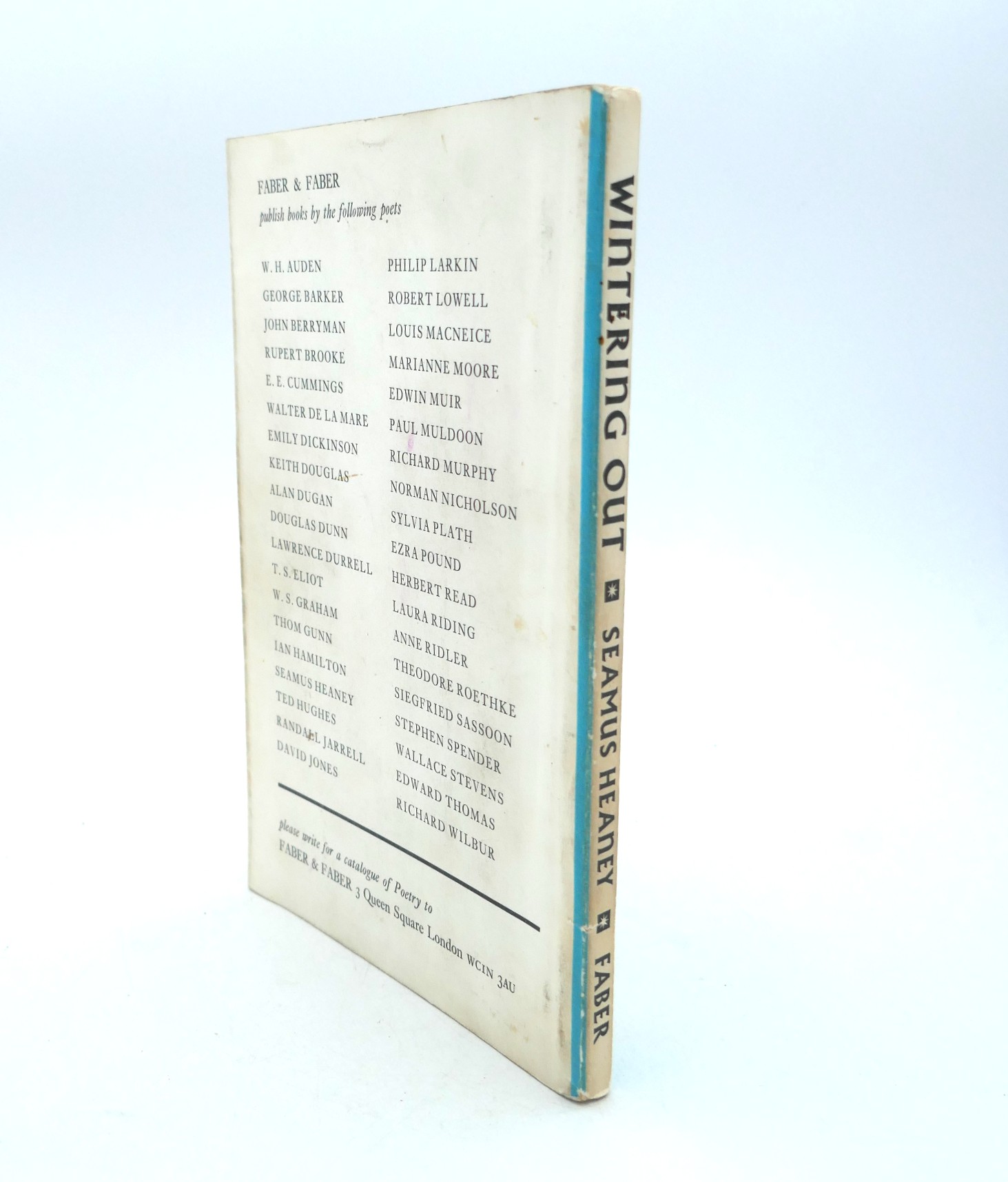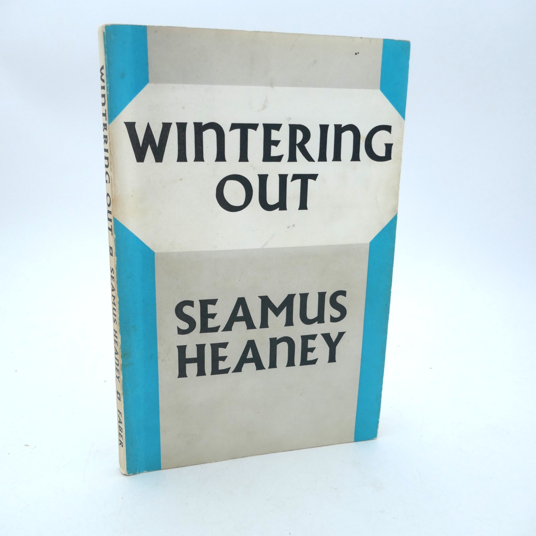 Wintering Out. London: Faber & Faber, 1972. First Edition. Pp, 80. Publisher’s blue, grey, black and white stiff wrappers. Light shelf-wear to wrappers, paperclip marks to top margin of half-title & residual of gum to verso, contents in fine bright condition.