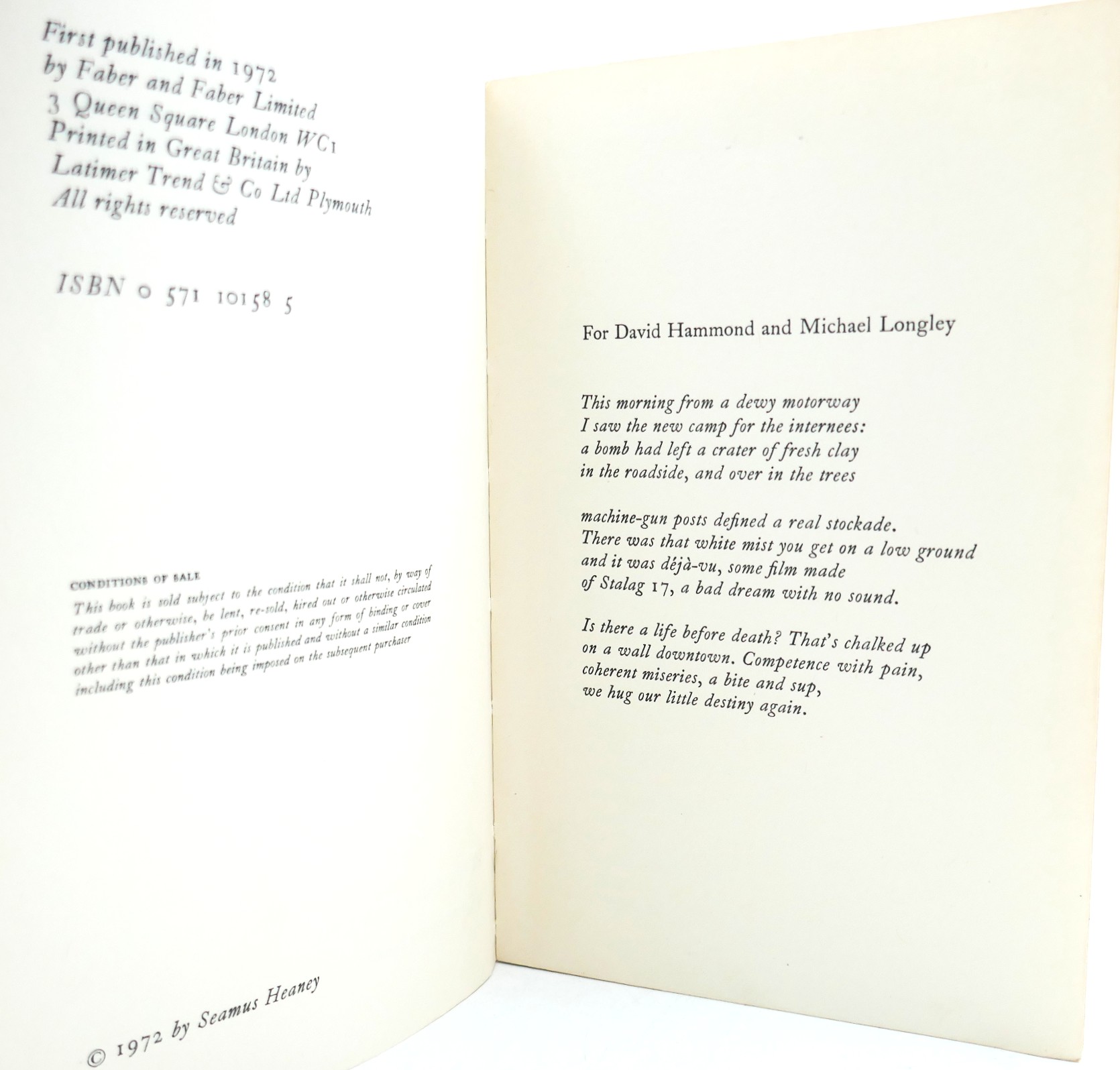 Heaney’s third collection and a pivotal work in his poetical development. This wrappers edition preceded the hardback edition.