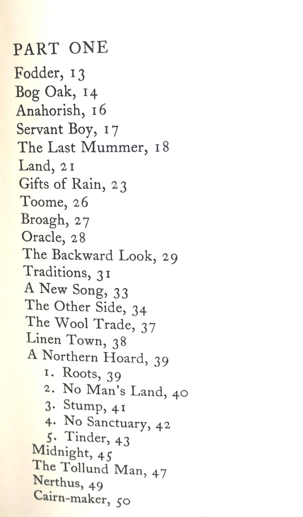 Having spent a year as guest lecturer at Berkeley, California, this collection reflects a broadening of the author’s landscapes, at a time of the deteriorating political situation in Northern Ireland, and coinciding with his move of residence from Ulster to the Republic.