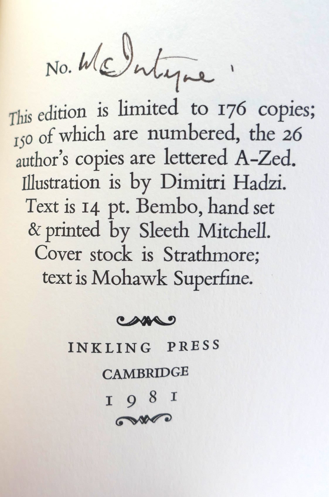 Limited Edition of 176 Copies; this one of 26 Author’s Copies, presented to poet & playwright Tom MacIntyre.