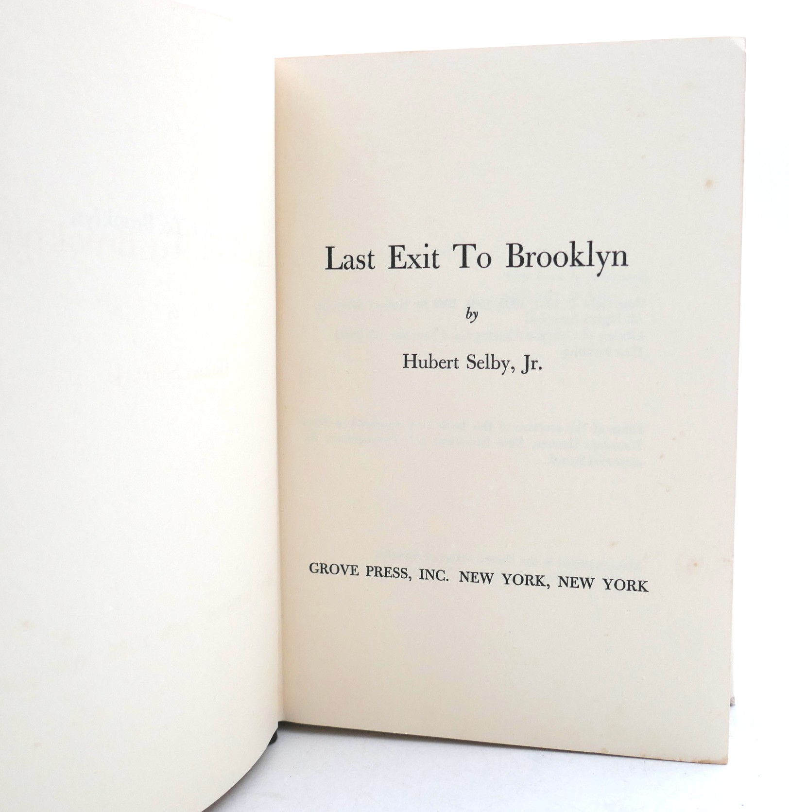 Last Exit to Brooklyn. New York: Grove Press, 1964. First Edition. Pp, 204. A nice bright copy in dust jacket. .